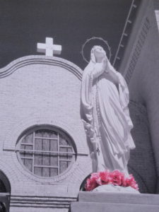 Two small mirrors are placed. One is atop the white tunnel…reflections of what used to be.