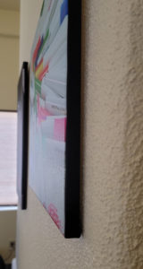 Each photo on canvas has a black edge and a saw tooth hanger.